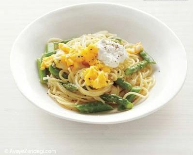 این غذا بسیار ساده است. تخممرغ به آن پروتئین می افزاید و پنیر ریکوتا برای آن مثل سس است. تکه های مارچوبه هم به آن رنگ زیبایی می دهد. ولی می توانید از هر سبزی فصل دیگری هم استفاده کنید، مانند کدو، گوجه فرنگی یا نخود سبز.