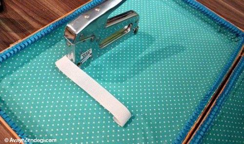 مرحله ۷: با نوارهای ترئینی داخل چمدان را تزئین کنید