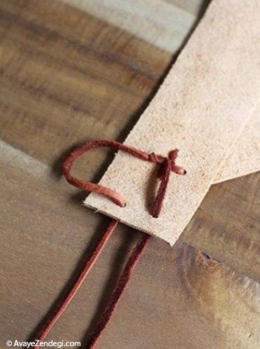 نوار باریک چرم را به شکل ضربدری از سوراخ ها بگذرانید.