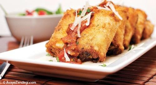 غذاهای سوخاری معمولا طرفداران زیادی دارد. مخصوصا اگر از نوع لازانیا باشد. این لازانیا نه تنها باب طبع بچه هاست، بلکه همه در هر سنی که باشند، این نوع لازانیا را دوست دارند. در تهیه این لازانیا، ورق های لازانیا را بعد از پیچاندن، در مواد مخصوص غلتانده و سپس سرخ می شود.