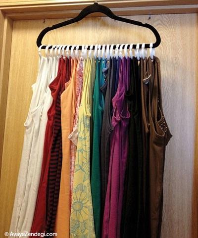 تاپها لباسهای دوستداشتنی هستند که در این فصل گرما زیاد به کار میآیند اما مشکلشان این است که به خاطر کمحجم بودنشان همیشه یک گوشه کشو قایم میشوند و پیدا کردنشان سخت است. ایده خوب استفاده از یک چوبلباسی و تعدادی حلقه یا یک چوب لباسی مخصوص است تا یکبار برای همیشه آنها را سر و سامان دهید.