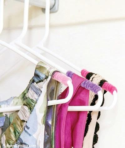 یکی از مشکلاتی که با چوبرختیها داریم سر خوردن لباس روی میله آنها و در ادامه سقوطشان کف کمد است. اگر یک تکه پارچه، نخ کاموا یا کش دم دستتان داشته باشید میتوانید مانعی سر راه لباسها درست کنید که از افتادنشان جلوگیری کند.