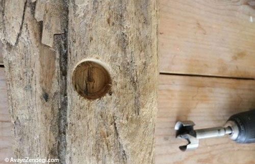 1. ابتدا با یک مسواک قدیمی سطح چوب را از گل و مواد دیگر کاملا پاک کنید. پس از آن با استفاده از دریل سوراخ های مختلفی روی سطح چوب ایجاد کنید. لازم نیست سوراخ ها خیلی عمیق باشند، کاکتوس ها فضای زیادی برای ریشه نیاز ندارند. شما هم چنین می توانید از شکاف های طبیعی چوب برای کاشت گیاهتان استفاده کنید.