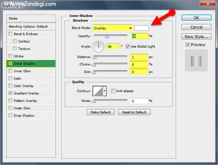 3. بر روی لایه مستطیل شکلی که ایجاد کرده اید دوبار کلیک کنید تا صفحه تنظیمات مربوط به لایه همانند تصویر زیر ظاهر شود . سپس با استفاده از عکس هایی که برای شما قرار داده ام تنظیمات پیش فرض را تغییر بدهید .
