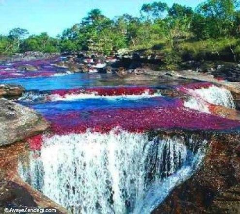 «کانو کریستالز» یا «رودخانه پنج رنگ» در سیرا د لا ماکارنا، کلمبیا، به معنای واقعی در پایان فصل بارانی شکوفا میشود. هنگامی که سطح آب و جریان آن در این رودخانه کاهش مییابد، یک گیاه آبزی بومی به نام ماکارنیا کلاویگرا به رنگ صورتی - این رنگ از گیاه در برابر تابش نور خورشید محافظت میکند - رودخانه را پر میکند.