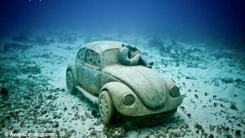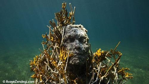این مجسمه ها که در فضای بزرگی در زیر آب جای گرفته اند مانند زندگی های منجمد شده ای در بین خز ها و گیاهان دریایی هستند.