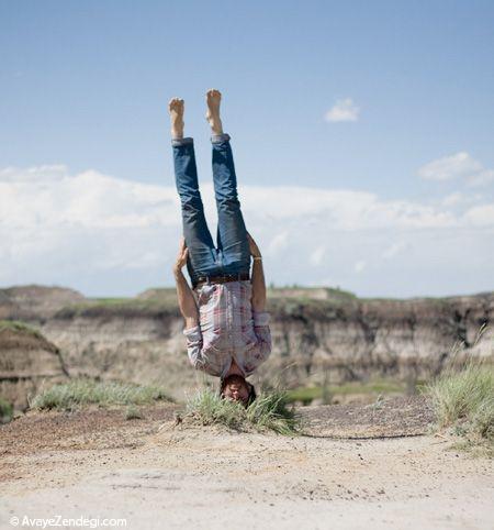 عکاس خلاق اهل لندن کالتون موریس بر روی سر خود تعادلش را حفظ کرده و از این موقعیت های جالب و دیدنی عکس های منحصر به فردی را به وسیله ی یک دوربین با تایمر 10 ثانیه ای گرفته است. پس از گرفتن این عکس ها او کمی تغییر و ویرایش بر روی آن ها انجام داده است.