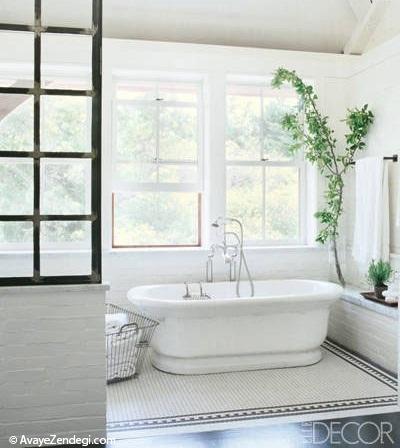در این تصویر، عکس حمام اصلی خانه مارتا وینیارد «مگ رایان» را مشاهده می کنید. همان طور که می بینید، همه وسایل و کف و در و دیوار به رنگ سفید انتخاب شده اند که اتفاقا باعث زیبایی بسیار زیاد حمام هم شده است. ناگفته نماند که برای دیده شدن این همه سفیدی، استفاده های جزئی از رنگ مشکی و گلدان های سبز هم بی تاثیر نیستند.