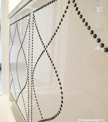 سرمیخ هایی این کابینت سفید رنگ نیز نوع دیگری از طرح را در پس زمینه سفید رنگ ایجاد کرده اند.
