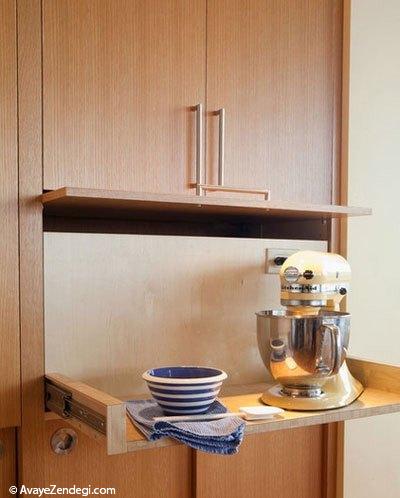 شما هم‌چنین می‌توانید یك كابینت را به وسایل برقی کوچک آشپزخانه اختصاص دهید. یكی از كاربردهای رایج این كابینت‌ها نگهداری از مخلوط‌كن است. اگر این وسایل در قفسه‌های كشویی قرار بگیرند دسترسی به آن‌ها راحت‌تر خواهد بود.